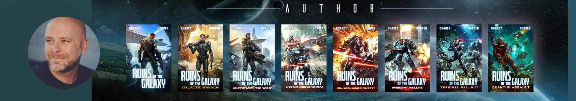 Christopher Hopper is an author, known for his bestselling military sci-fi series Ruins of the Galaxy and Ruins of the Earth. His other award-winning series include Resonant Sun, The Sky Riders, The White Lion Chronicles, and The Berinfell Prophecies. Clicking the image will take you to the Ruins Website.